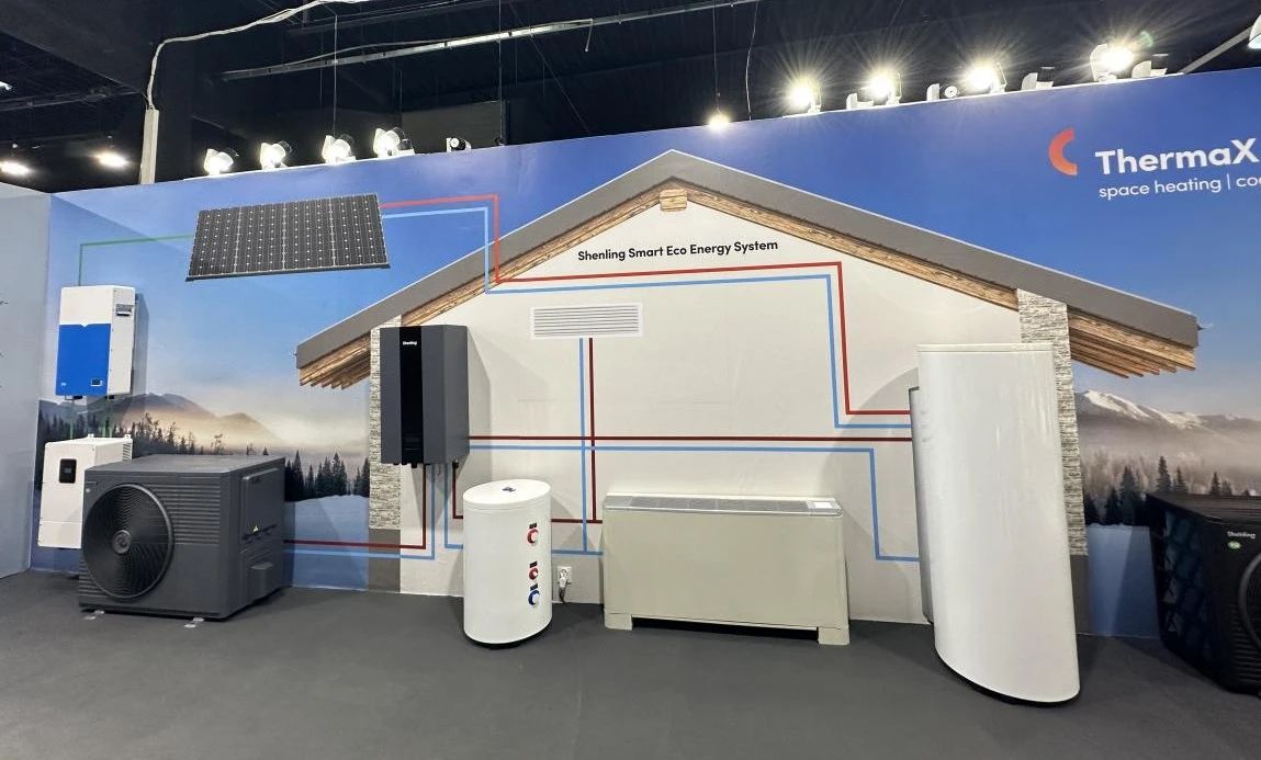 此次展会,申菱展示了最新的超低温空气源热泵采暖产品及申菱智慧能源系统,包括ThermaX整体系列、ThermaX分体系列、Polestar商用系列等采暖产品,以及光伏热、储能等能源系列产品。
