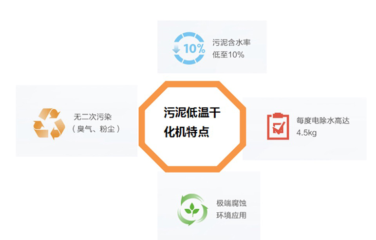 申菱污泥低温干化机,可将污泥含水率降低至10%,除水能效比4.5kg·H2O/kw·h,无尾气排放和扬尘危害,真正实现节能环保。